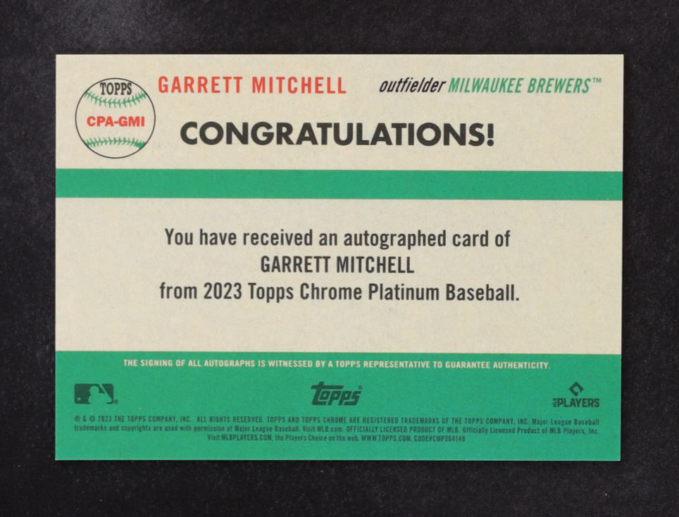 Garrett Mitchell Signed 2023 Topps Chrome Platinum Autograph #CPAGMI RC #24/99