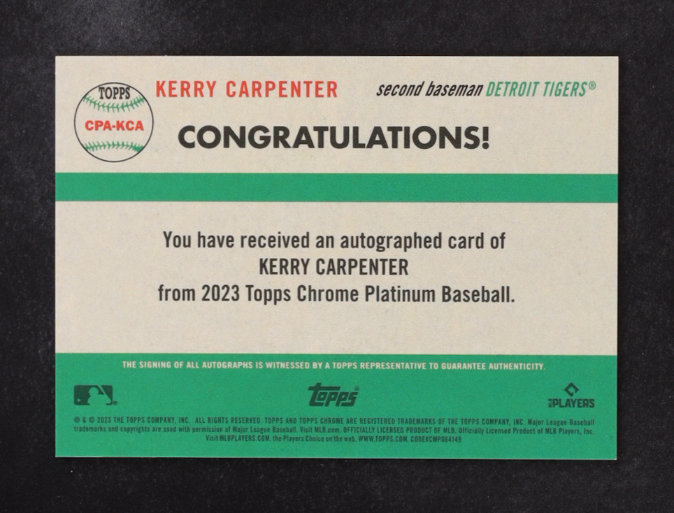 Kerry Carpenter Signed 2023 Topps Chrome Platinum Autograph #CPAKCA RC