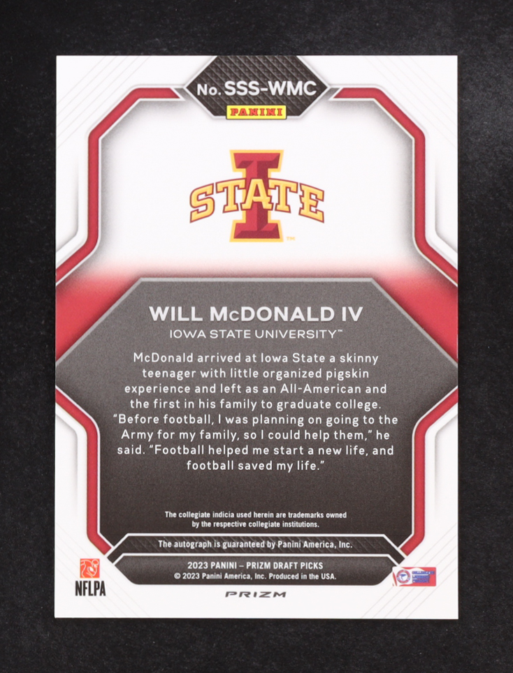 Will McDonald IV 2023 Panini Prizm Draft Picks Saturday Star Signatures #SSSWMC RC