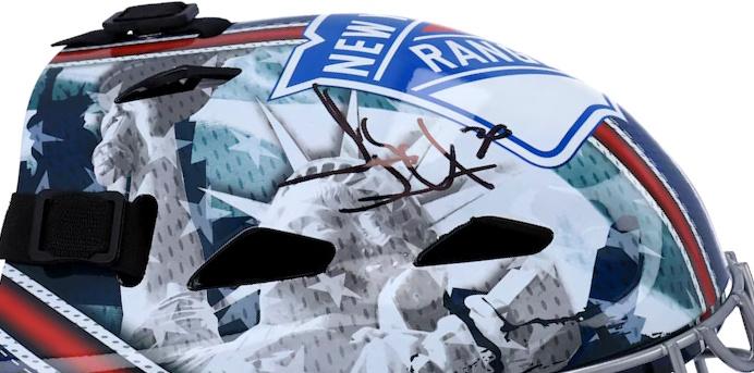 New York Rangers full-size replica goalie mask. Hand-signed by Henrik Lundqvist (HOF).