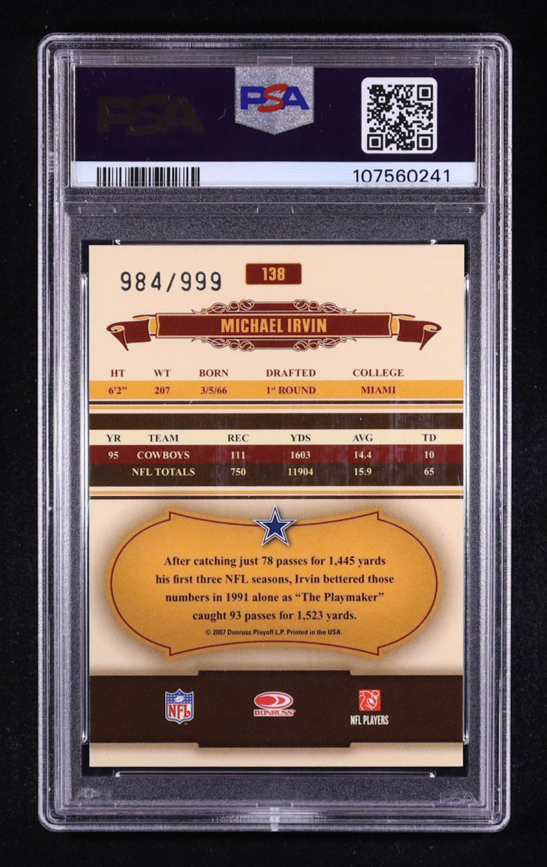 Michael Irvin 2007 Donruss Classics #138 #984/999 (PSA 10)