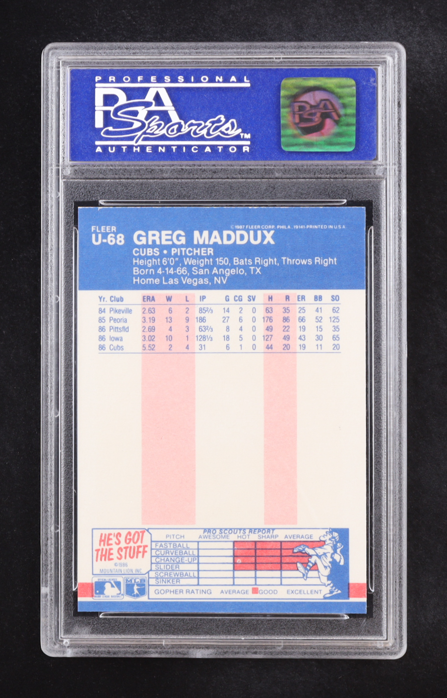 Greg Maddux 1987 Fleer Update #U68 XRC (PSA 9)