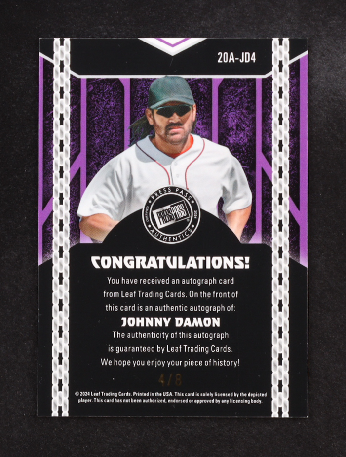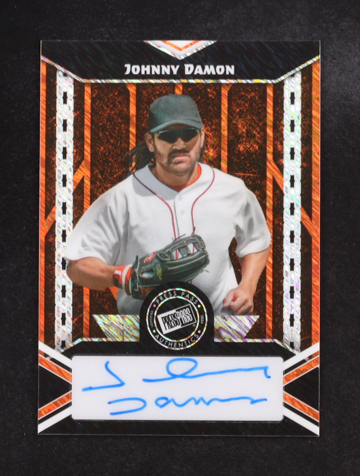 Johnny Damon 2024 Leaf Collective '00 Press Pass Autographs Orange Shimmer #20AJD4 #4/8