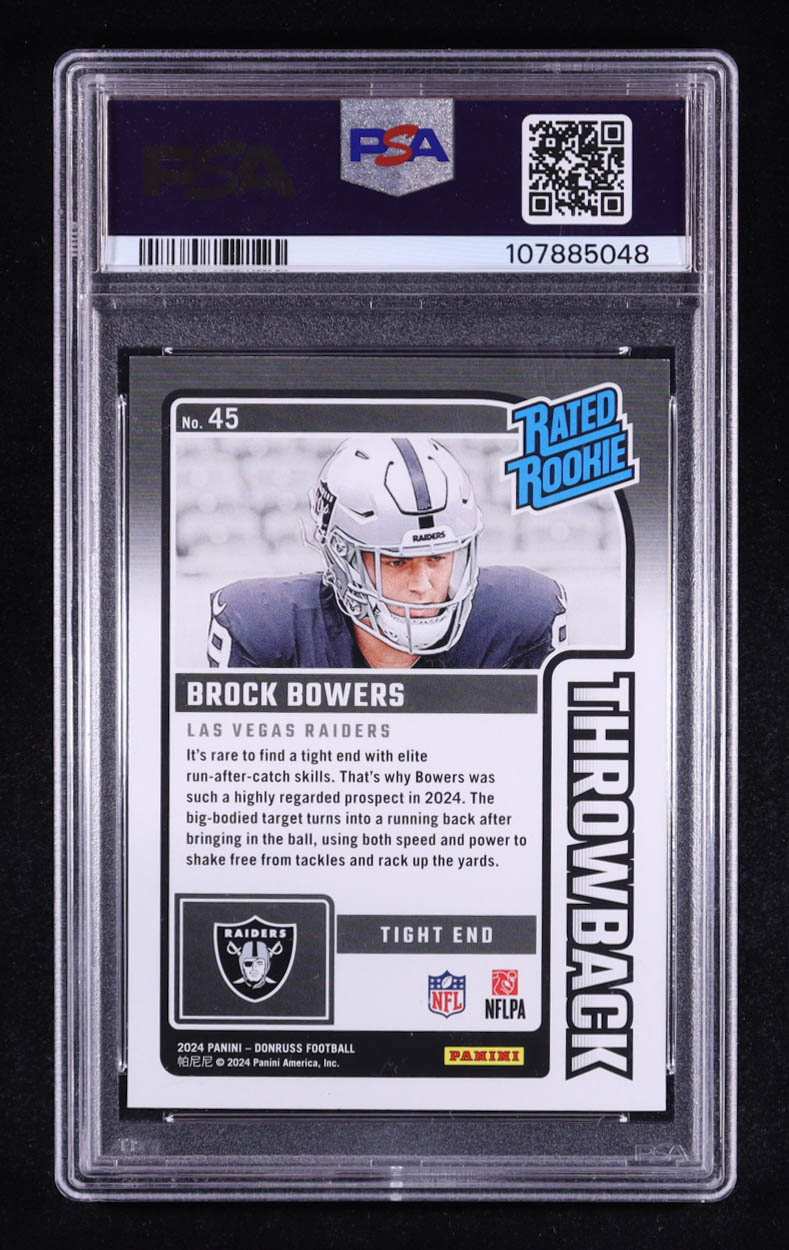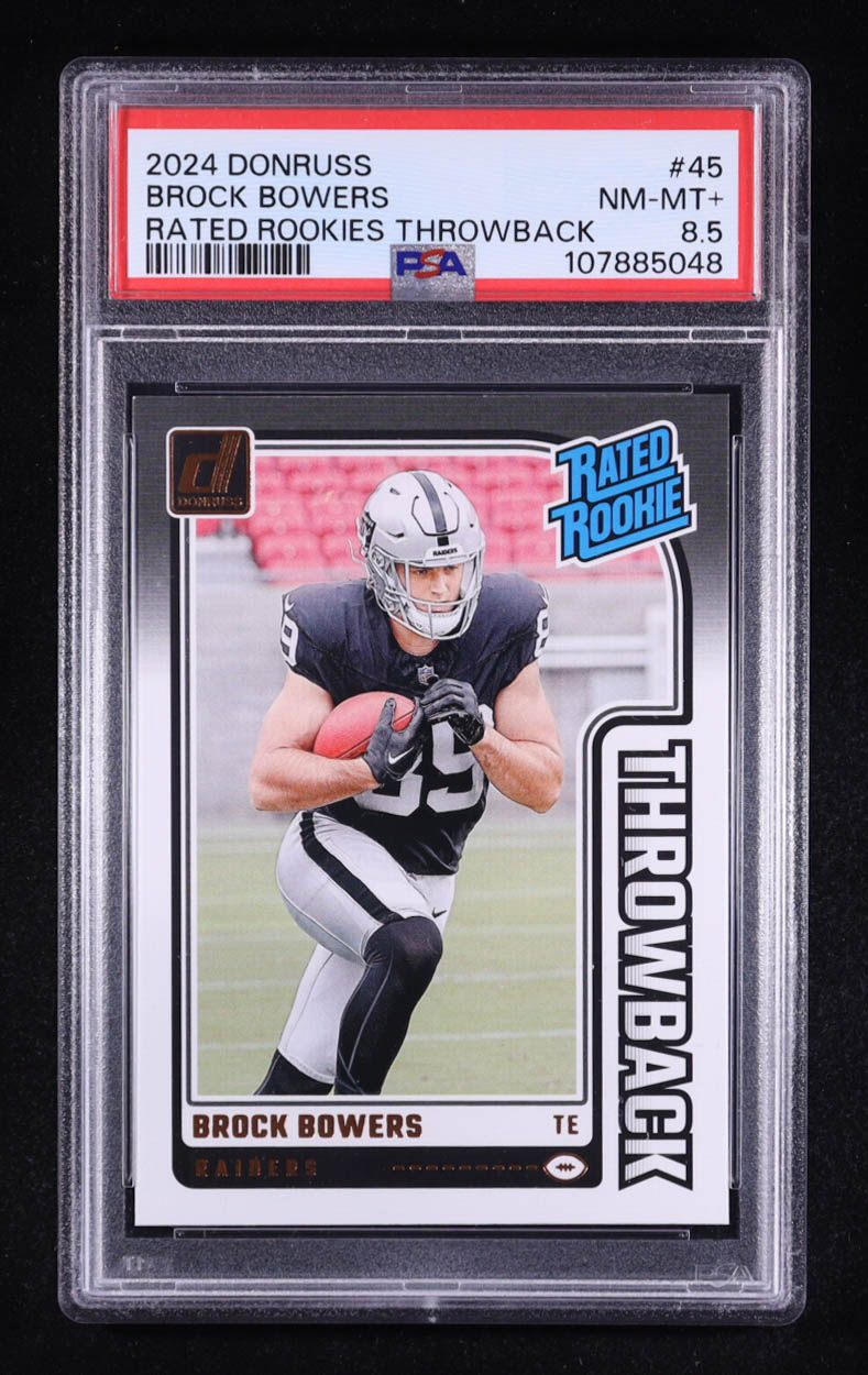 Brock Bowers 2024 Donruss Rated Rookies Throwback #45 RC (PSA 8.5)
