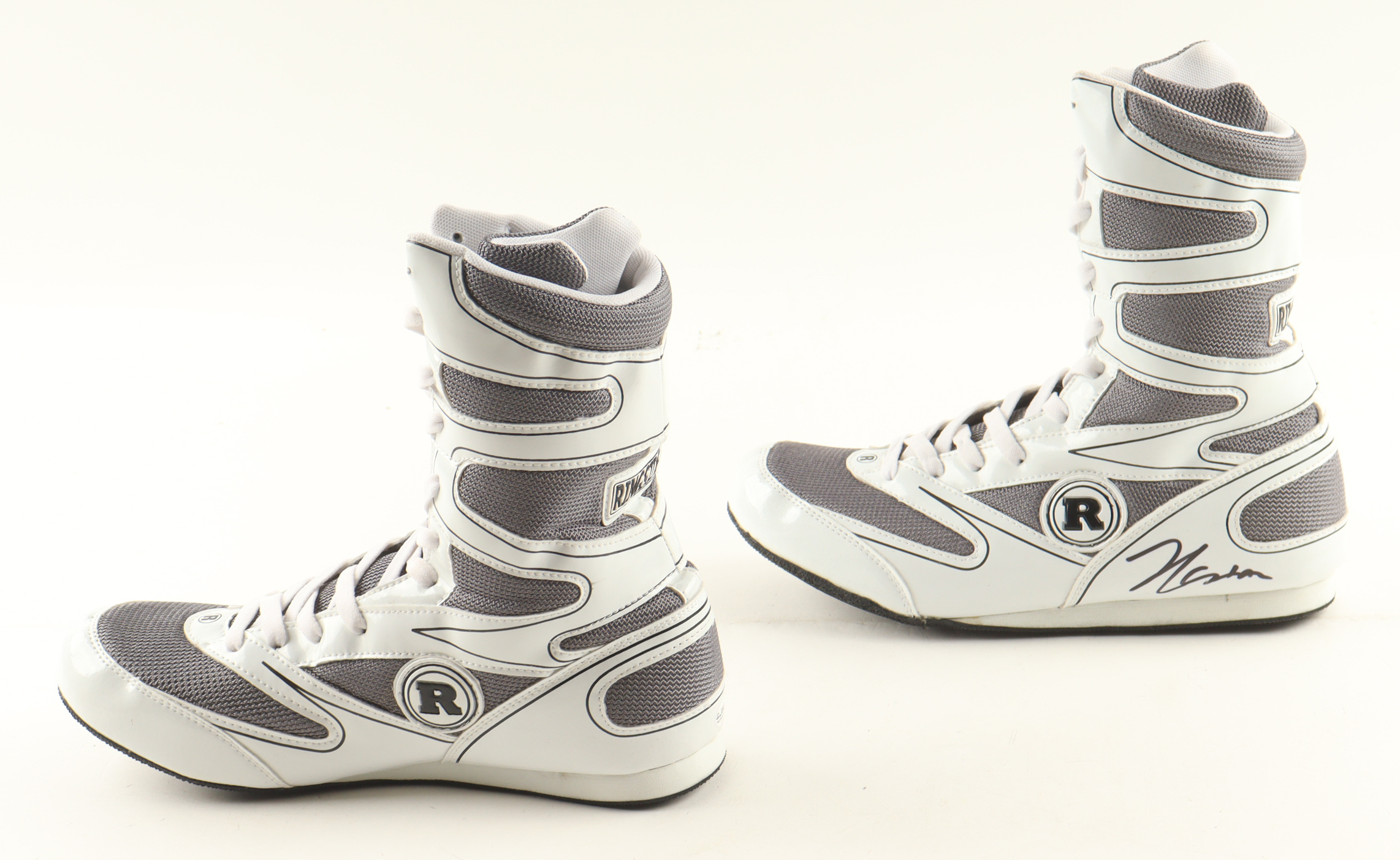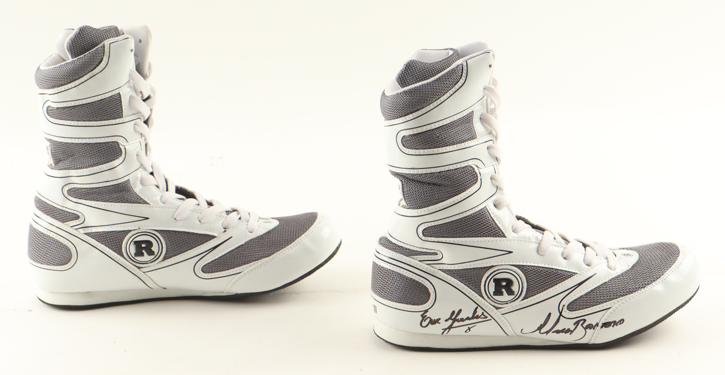 Pair of (2) Ringside professional boxing boots. Hand-signed by Julio Cesar Chavez, Marco Antonio Barrera and Erik Morales.