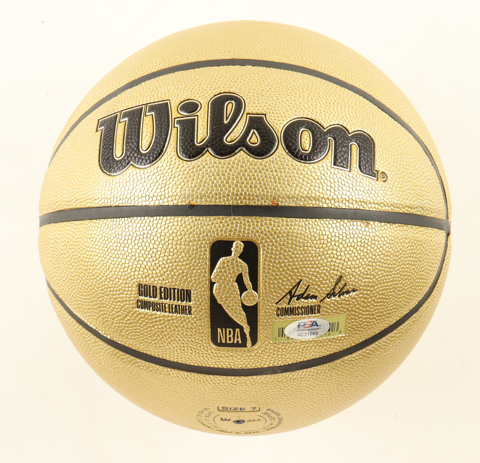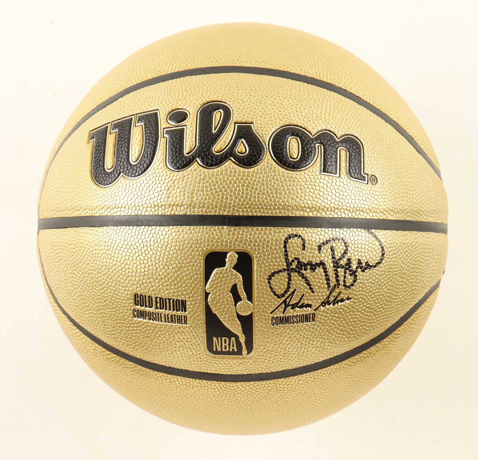 Wilson Gold Edition basketball With Display Stand has been hand-signed by Larry Bird (Boston Celtics, HOF). Display stand and plaque are included as shown.