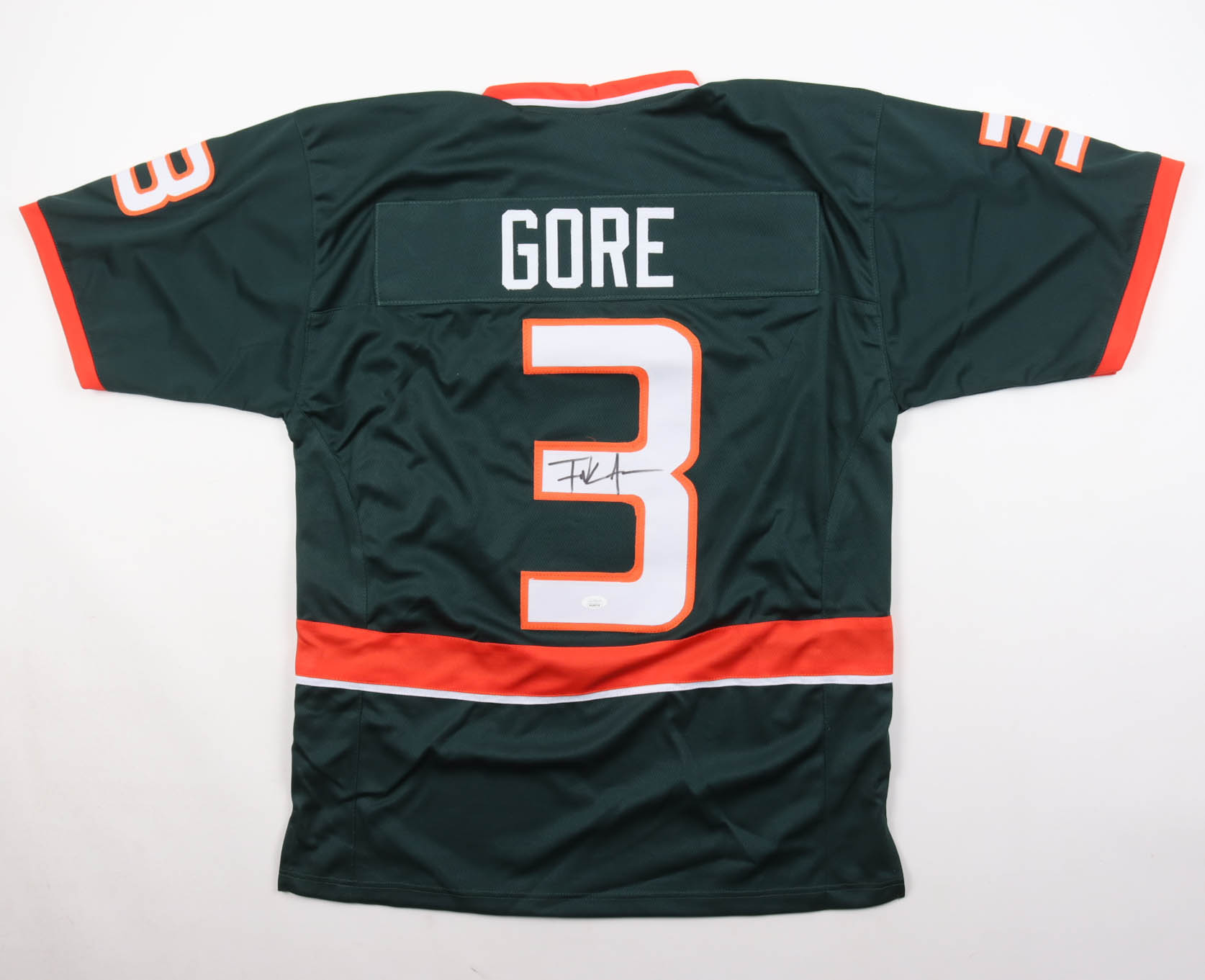Custom jersey with everything sewn on, size XL. Hand-signed by Frank Gore.