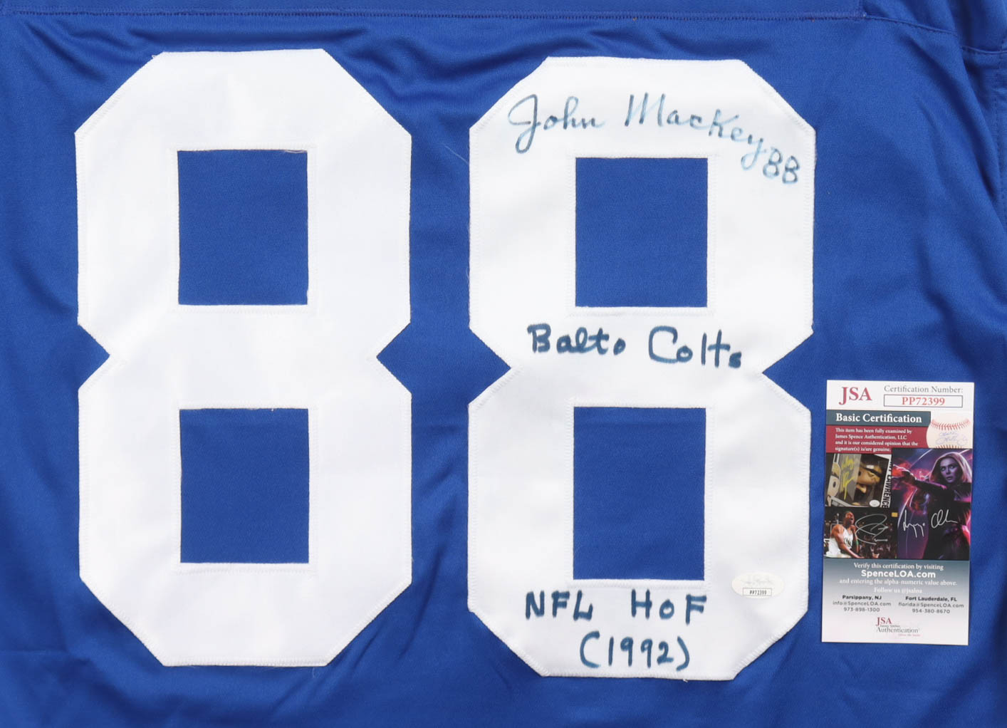 John Mackey Signed Jersey Inscribed "Balto Colts" & "NFL HOF (1992)" (JSA)
