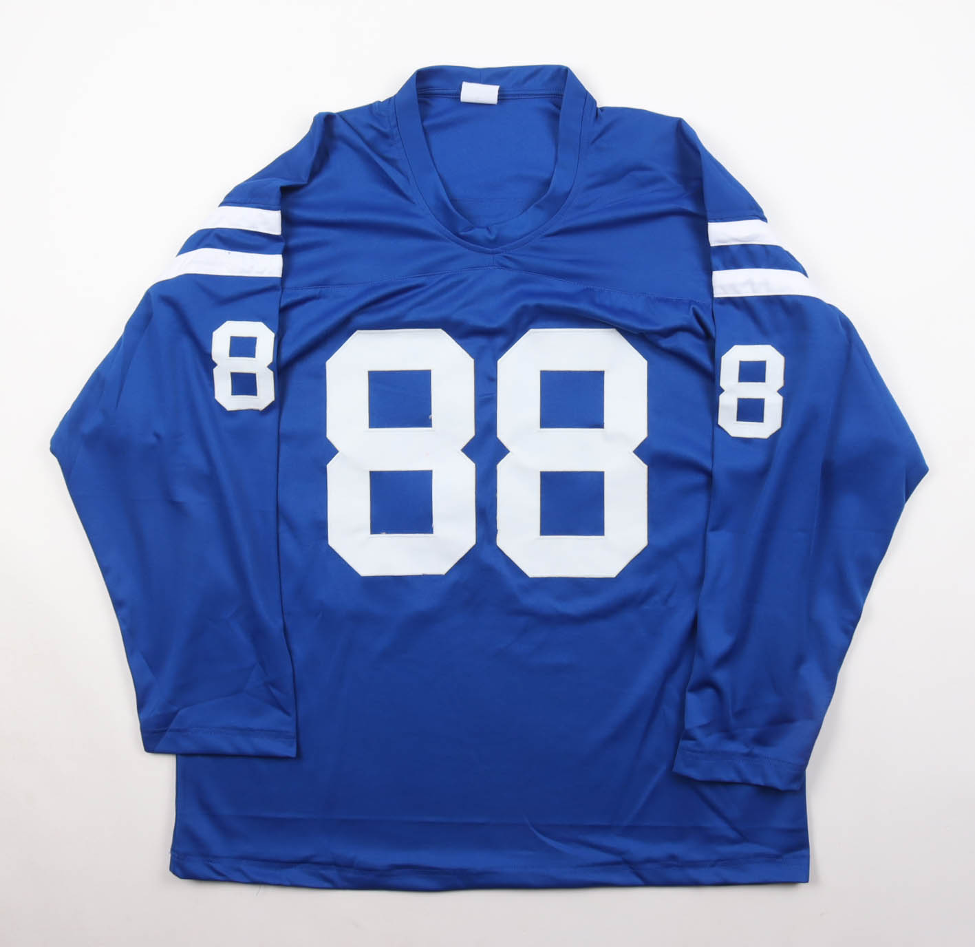 Custom jersey with everything sewn on, size XL. Hand-signed and inscribed by John Mackey (D. 2011, HOF).