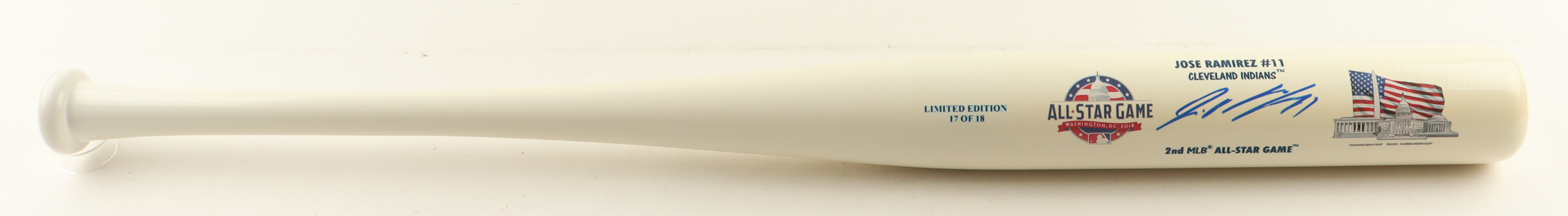 Limited Edition Washington DC 2018 All-Star Game baseball bat has been hand-signed by Jose Ramirez (Cleveland Indians). Bat is limited edition #17/18.
