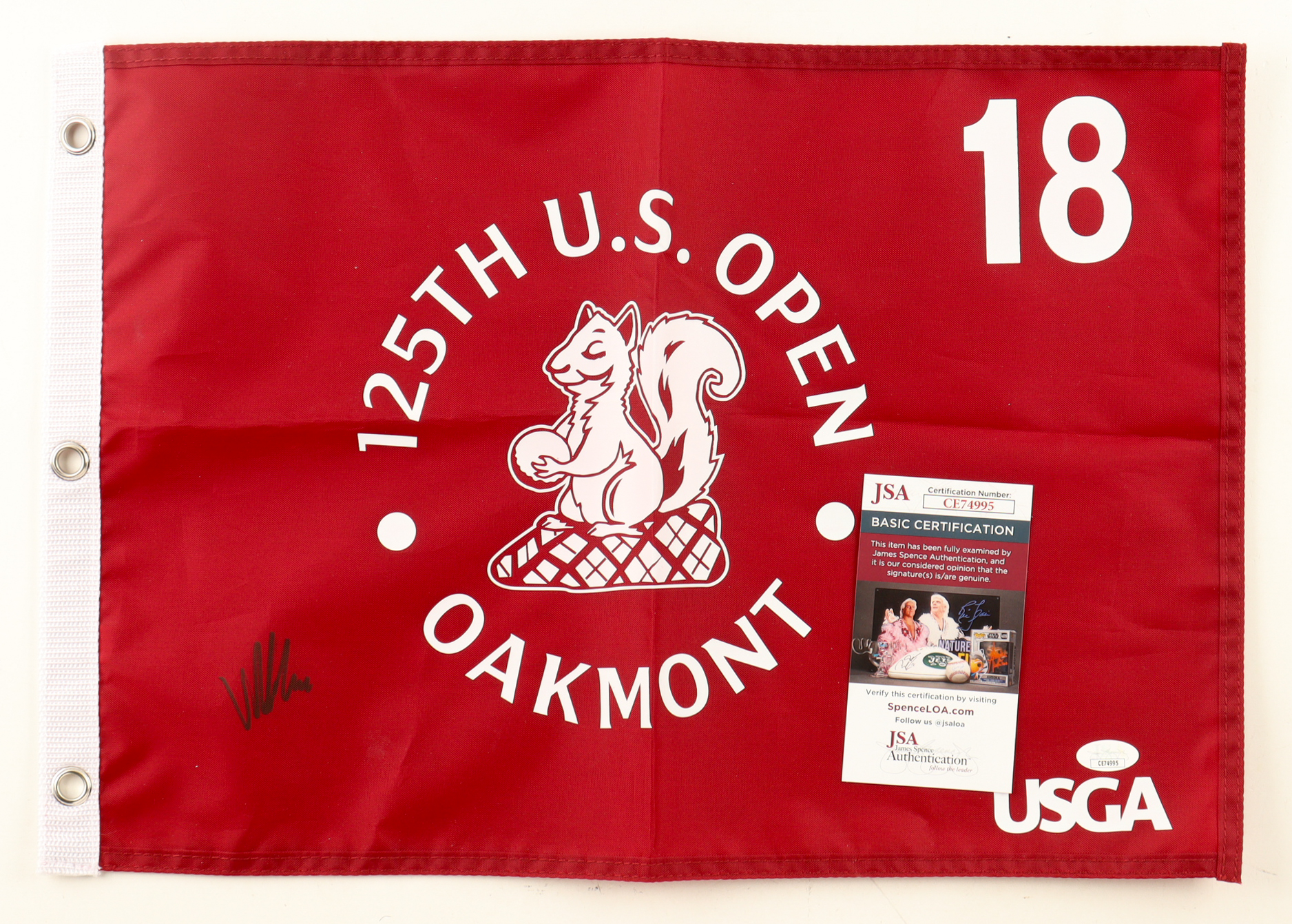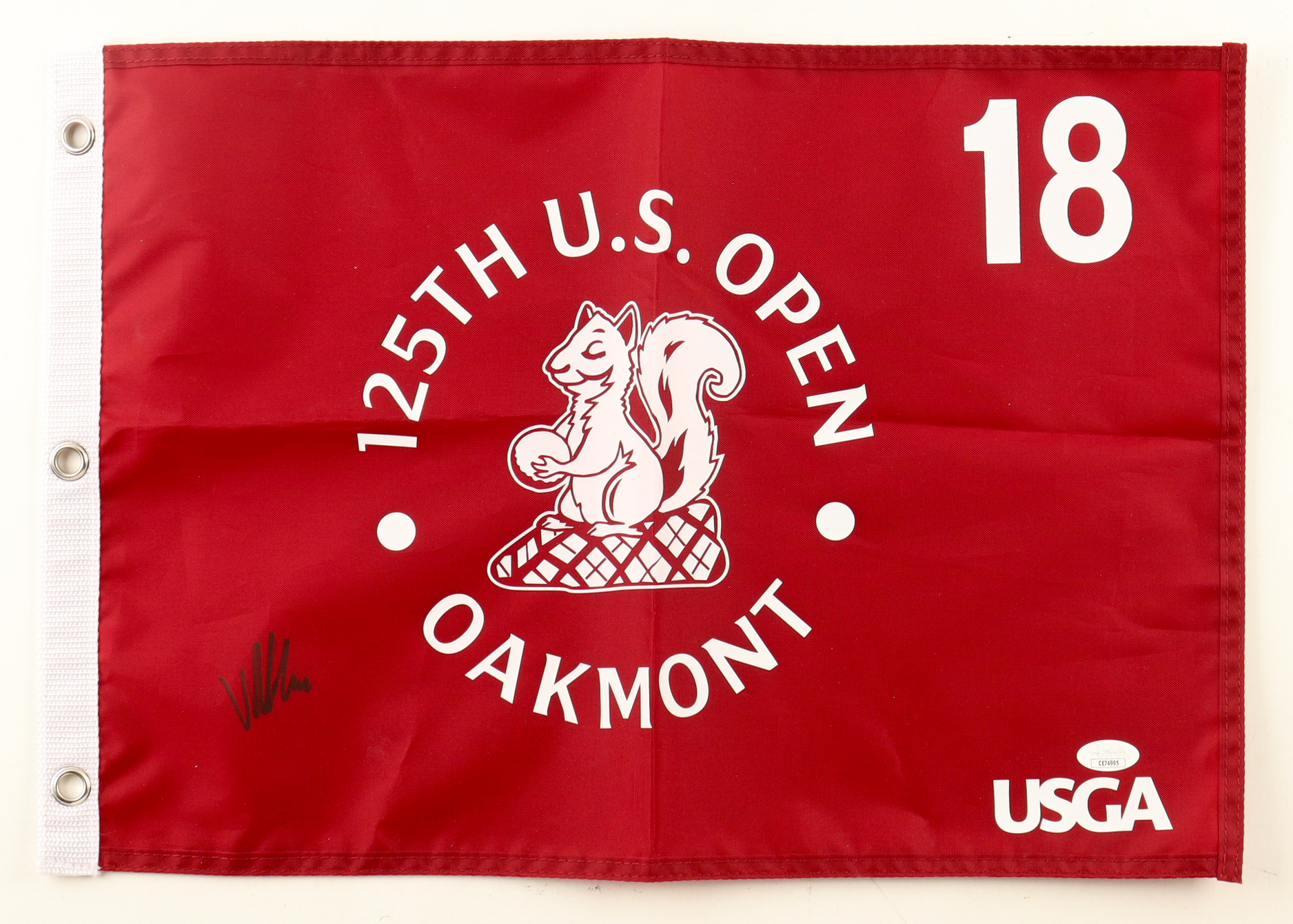Viktor Hovland Signed 2025 "125th U.S. Open Oakmont" Golf Pin Flag (JSA)