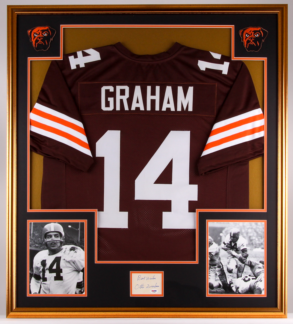 Otto Graham Signed Browns 34x38 Custom Framed Jersey Display Inscribed "Best Wishes" (PSA COA)