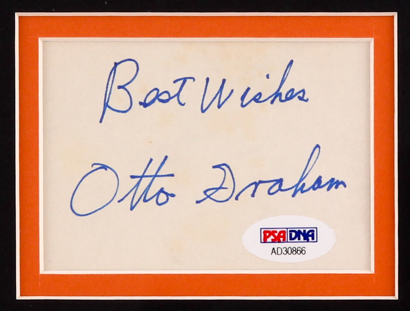 The autographed index card was authenticated and encapsulated by PSA/DNA for authenticity purposes. Index card has been removed from slab and placed into a jersey framed display.