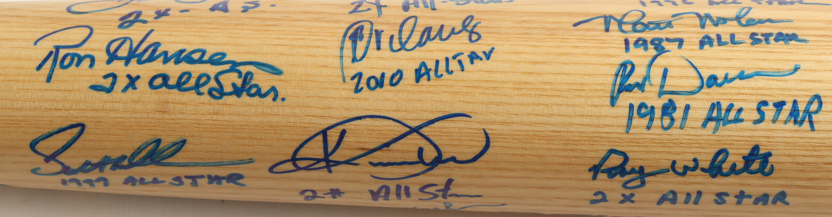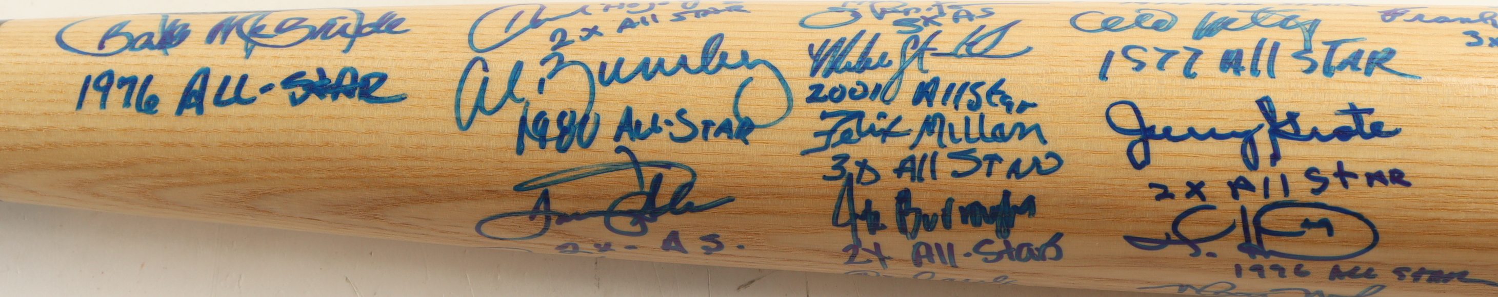 Rawlings Pro baseball bat has been hand-signed by over (30) all-stars in baseball history! List of signers on the bat are listed below:
