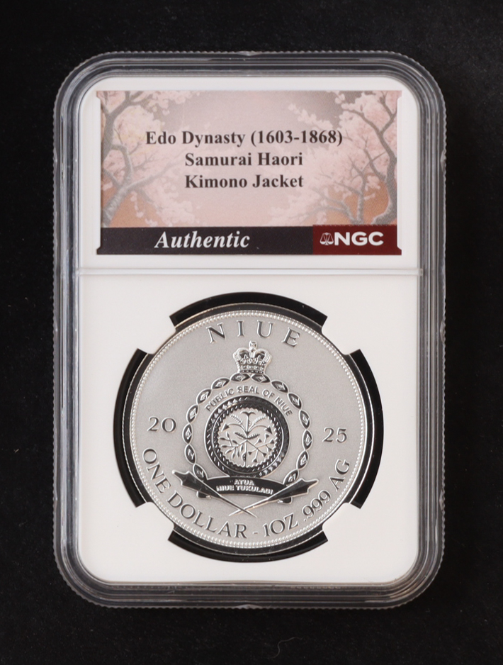 2025 Niue $1 Samurai Warrior - Edo Dynasty (1603-1868) Samurai Haori Kimono Jacket Relic (NGCX REVERSE PROOF 10)
