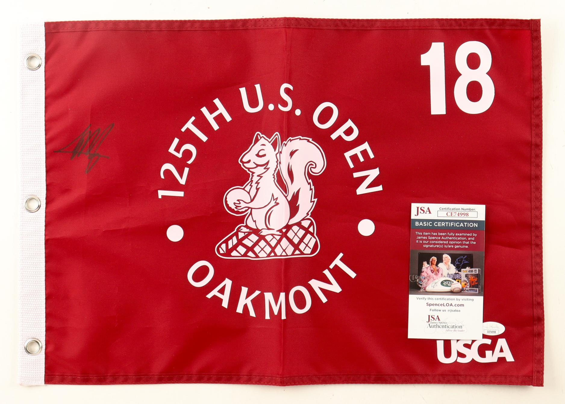 Collin Morikawa Signed 2025 "125th U.S. Open Oakmont" Golf Pin Flag (JSA)