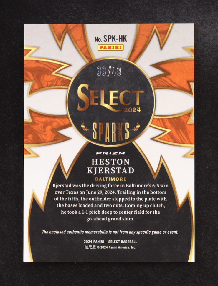 Heston Kjerstad 2024 Panini Select Sparks Relics Patch Blue Prizms #SPK-HK RC #33/49