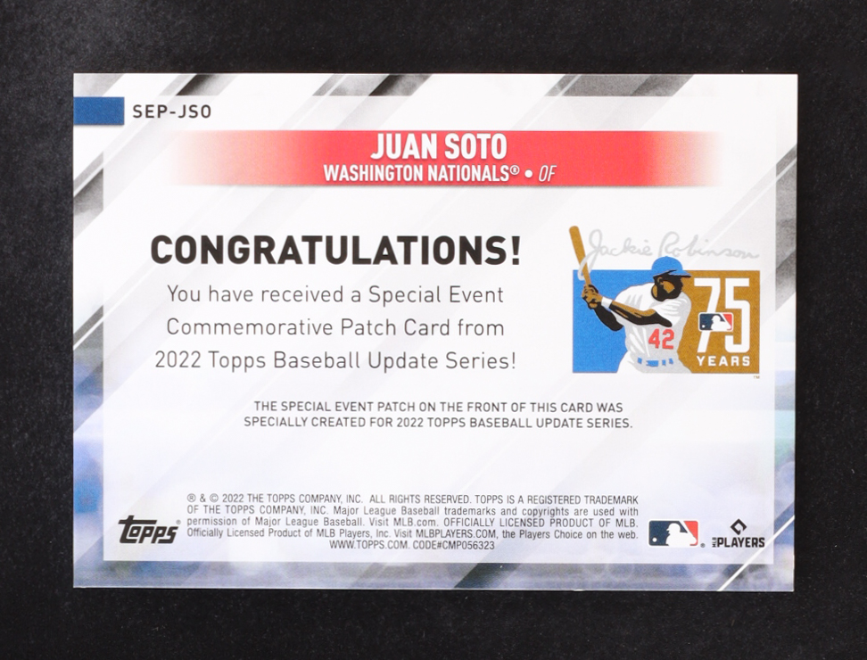 Juan Soto 2022 Topps Update Commemorative Special Event Jackie Robinson Day Patch #SEP-JSO