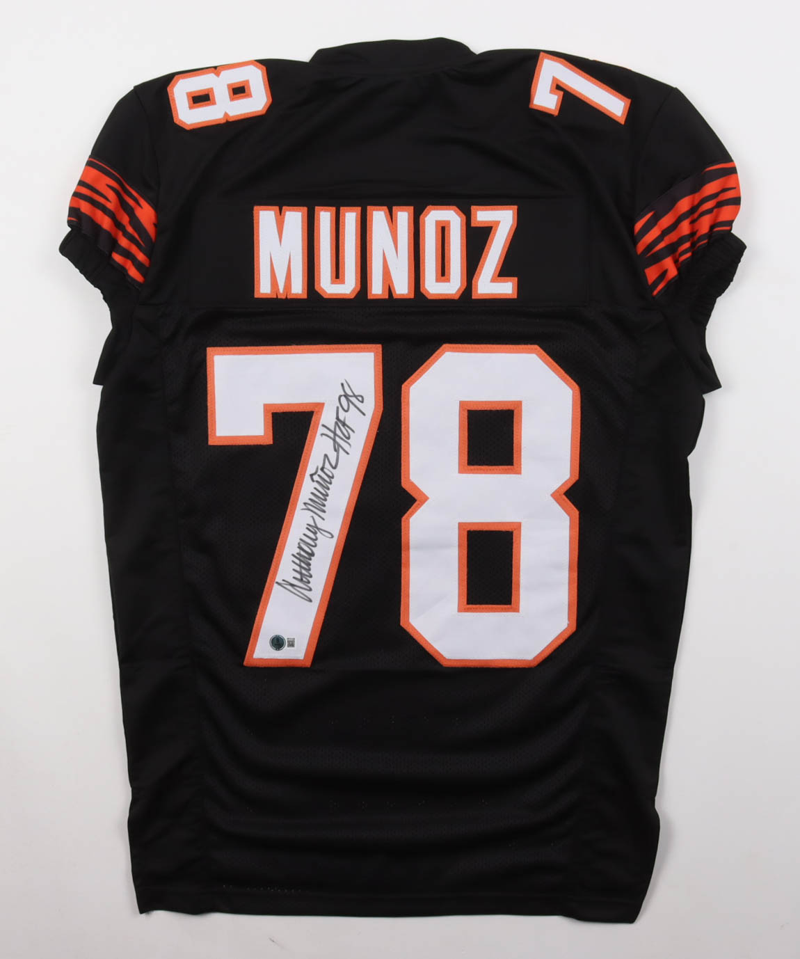 Custom jersey with everything sewn on, size XL. Hand-signed by Anthony Munoz (HOF).