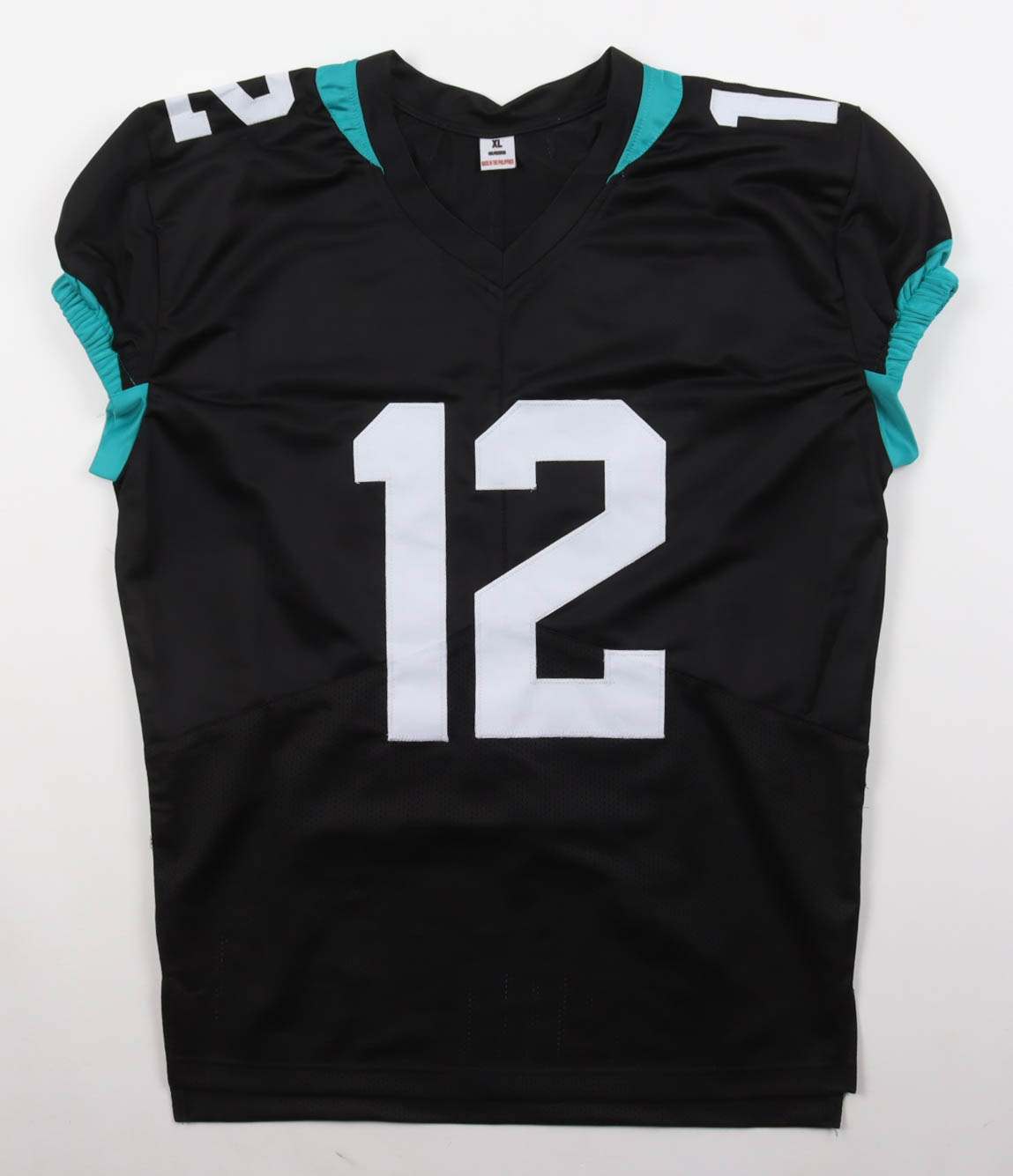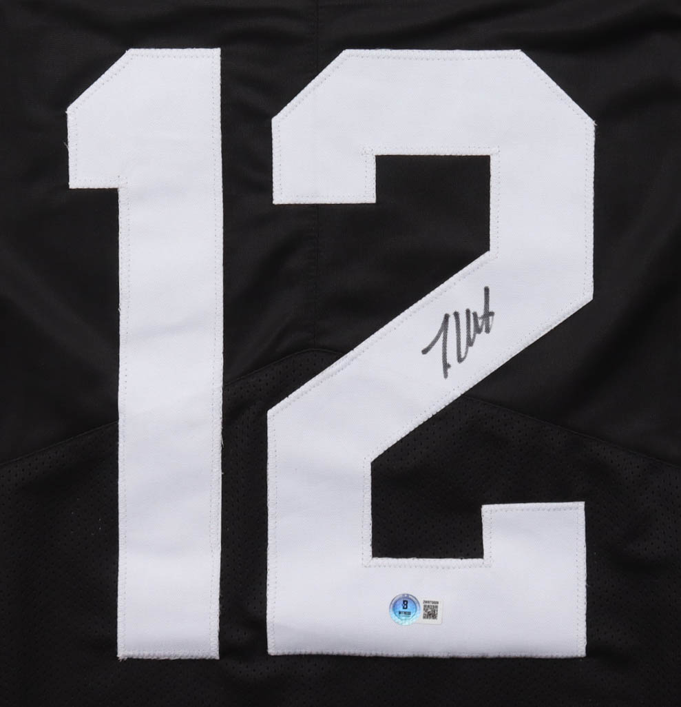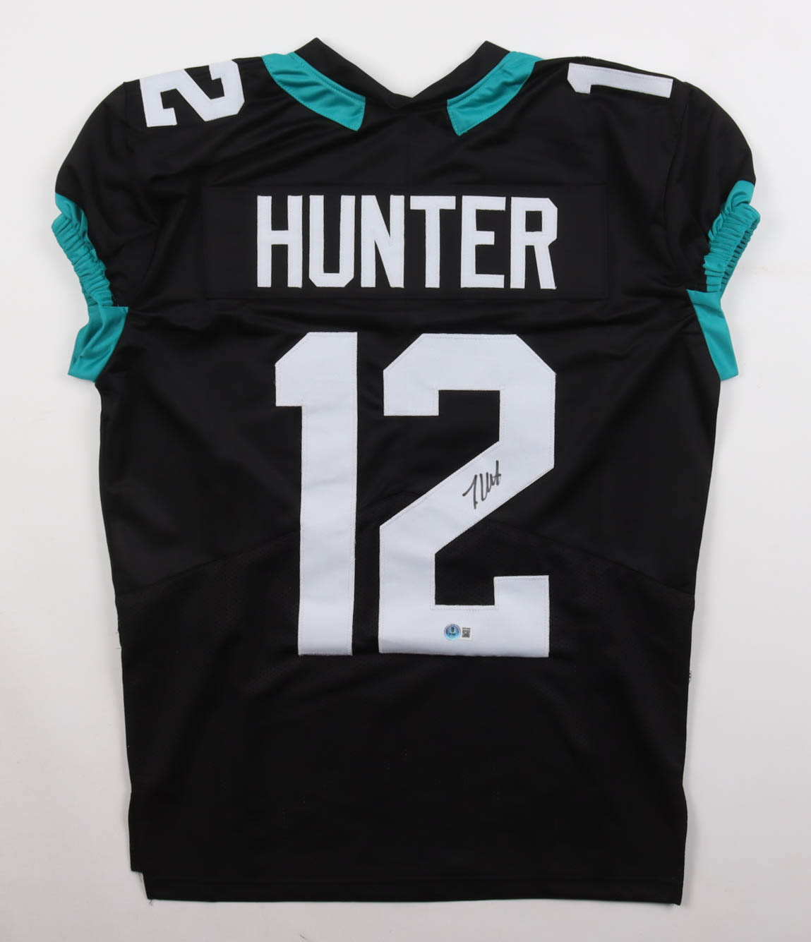 Custom jersey with everything sewn on, size XL. Hand-signed by Travis Hunter.