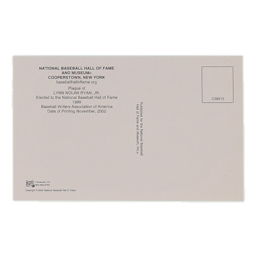 Nolan Ryan Signed Hall Of Fame Plaque Postcard (Ryan Authentication)