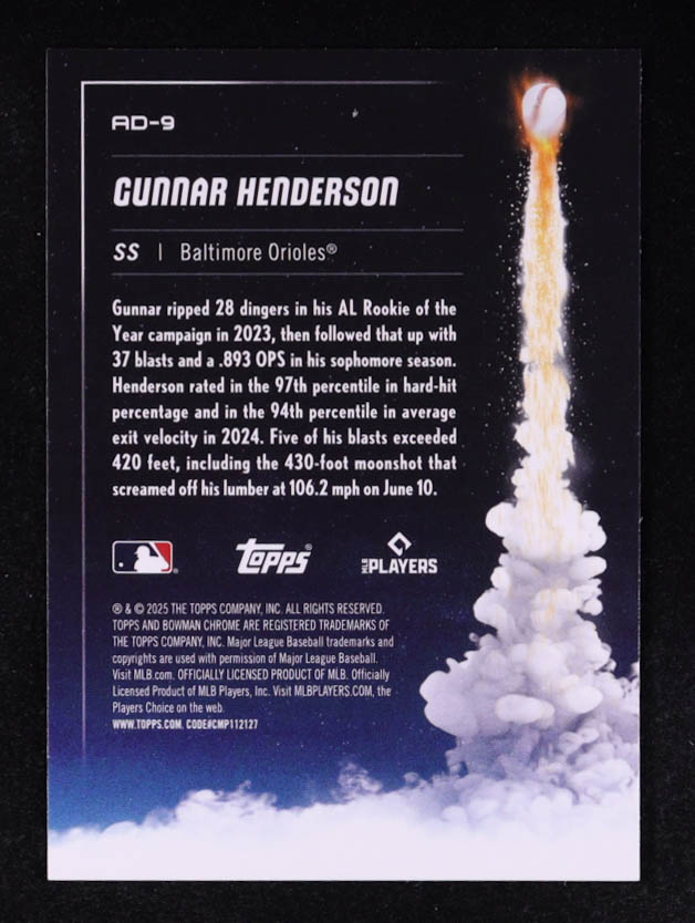 Gunnar Henderson 2025 Topps Bowman Chrome Adios #AD-9