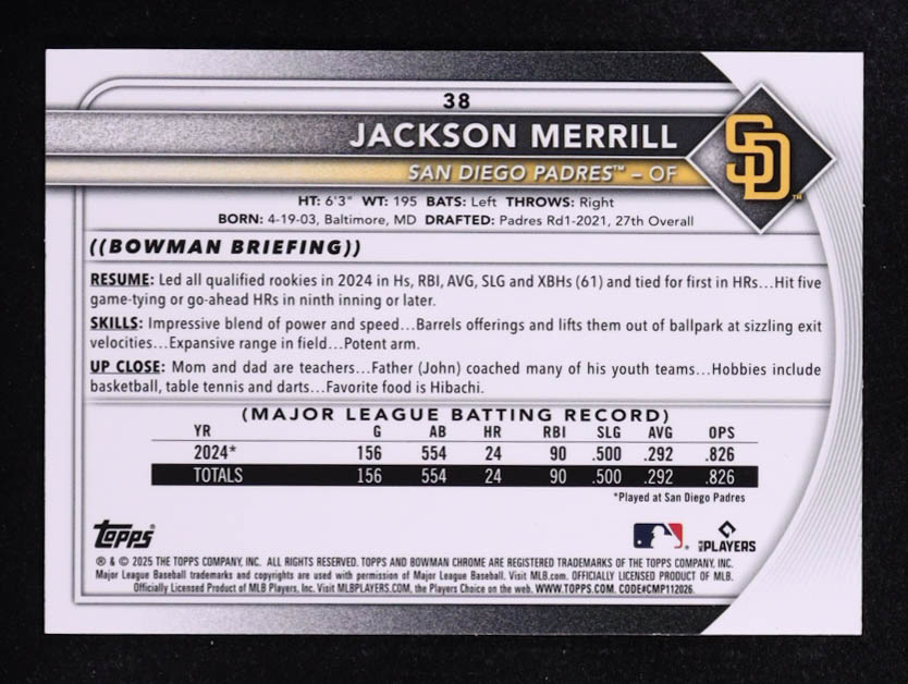 Jackson Merrill 2025 Topps Bowman Chrome Silver Geometric #38 #378/499