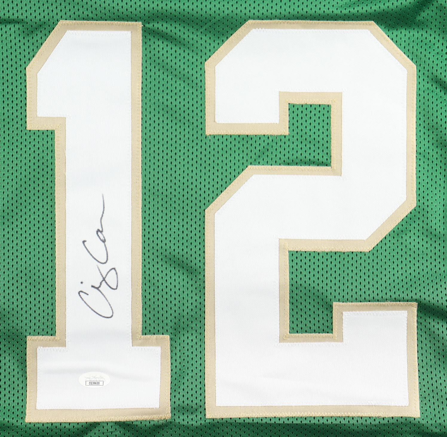 Custom jersey with everything sewn on, size XL. Hand-signed by C.J. Carr.
