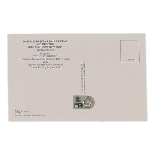 Ted Simmons Signed Hall Of Fame Plaque Postcard (MLB)