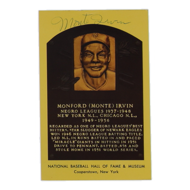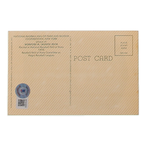 Monte Irvin Signed Hall Of Fame Plaque Postcard (Beckett)