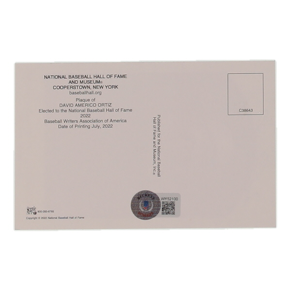 David Ortiz Signed Hall Of Fame Plaque Postcard (Beckett)