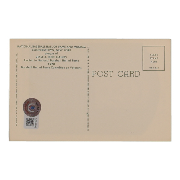 Jesse Haines Signed Hall Of Fame Plaque Postcard (Beckett)