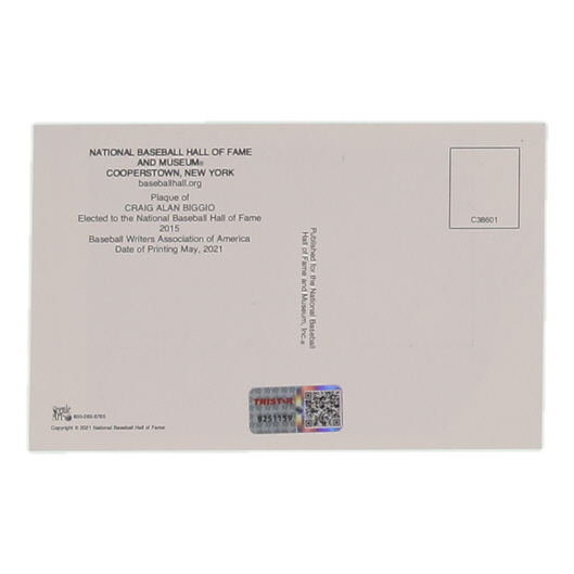 Craig Biggio Signed Hall Of Fame Plaque Postcard (TriStar)