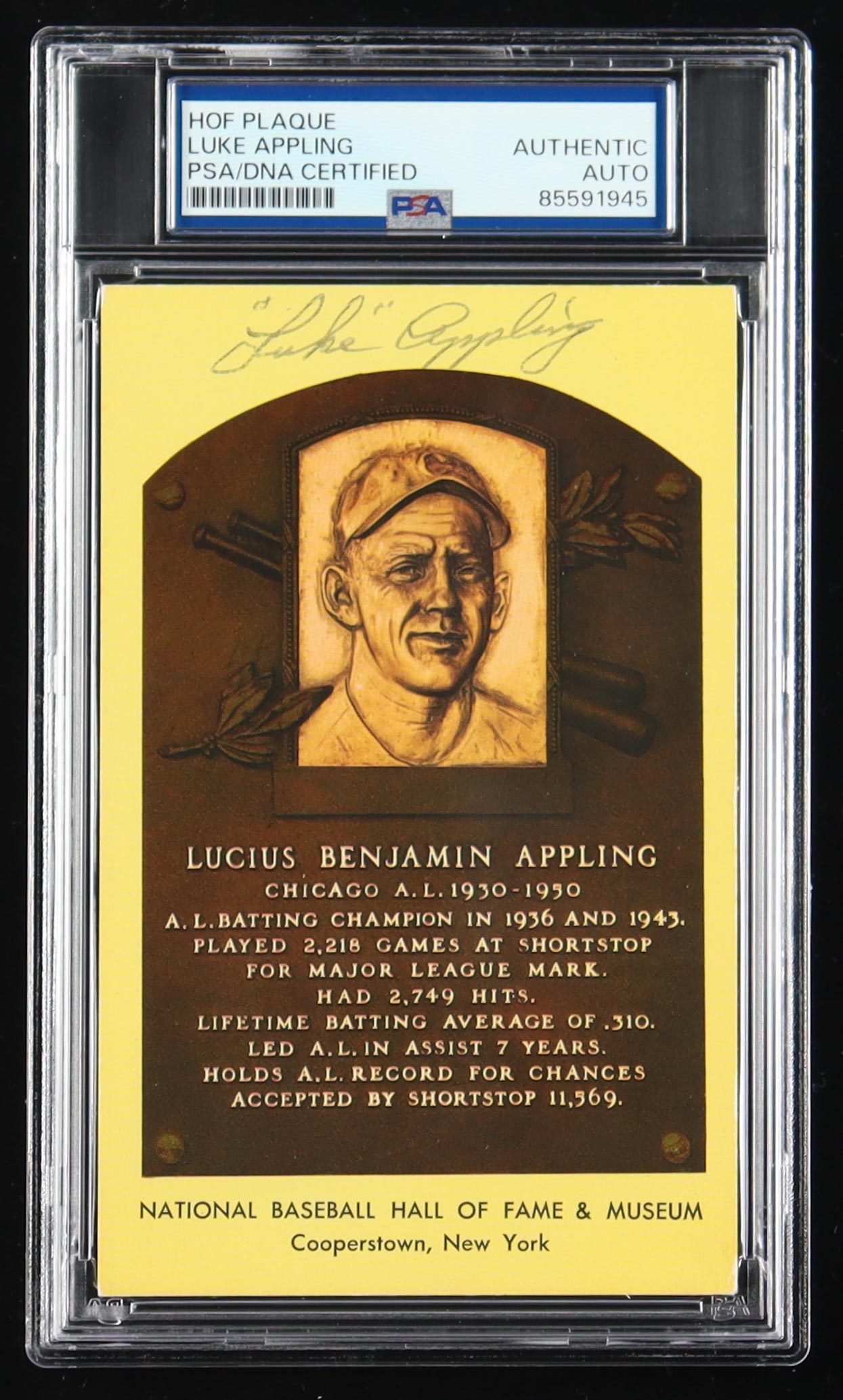 Luke Appling Signed Cut on Hall of Fame Plaque Postcard (PSA)
