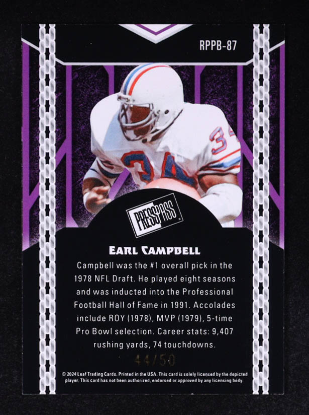 Earl Campbell 2024 Leaf Press Pass #RPPB87 #44/50