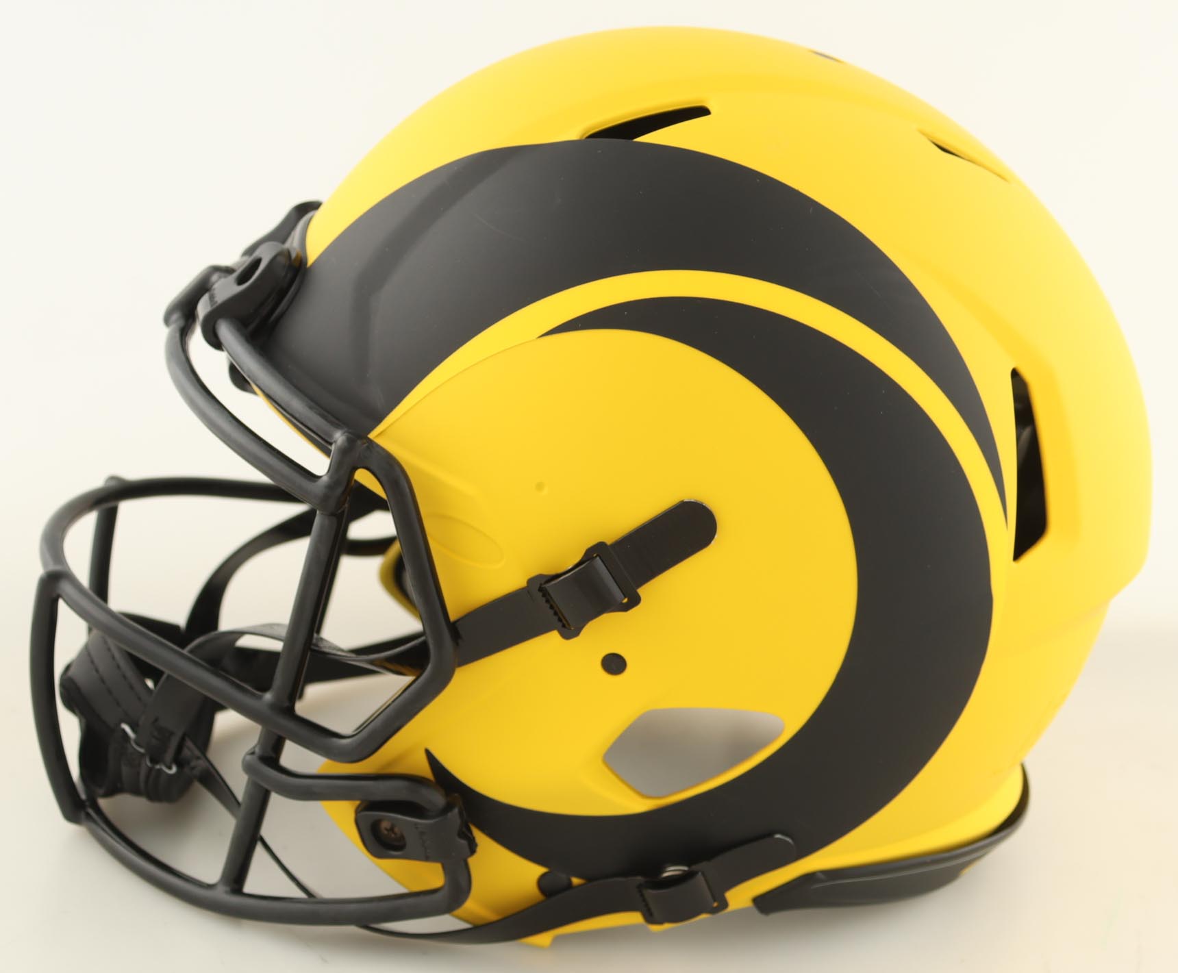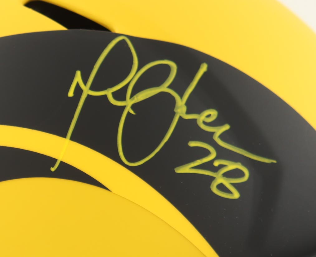 Riddell Los Angeles Rams full-size authentic on-field Rave Alternate speed helmet. Hand-signed by Marshall Faulk (HOF).