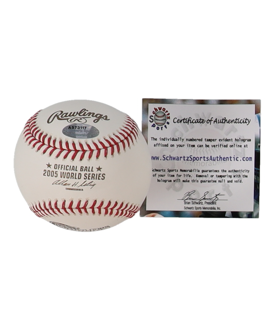 Rawlings Official 2005 World Series logo baseball has been hand-signed and inscribed by Luis Vizcaino (Chicago White Sox).