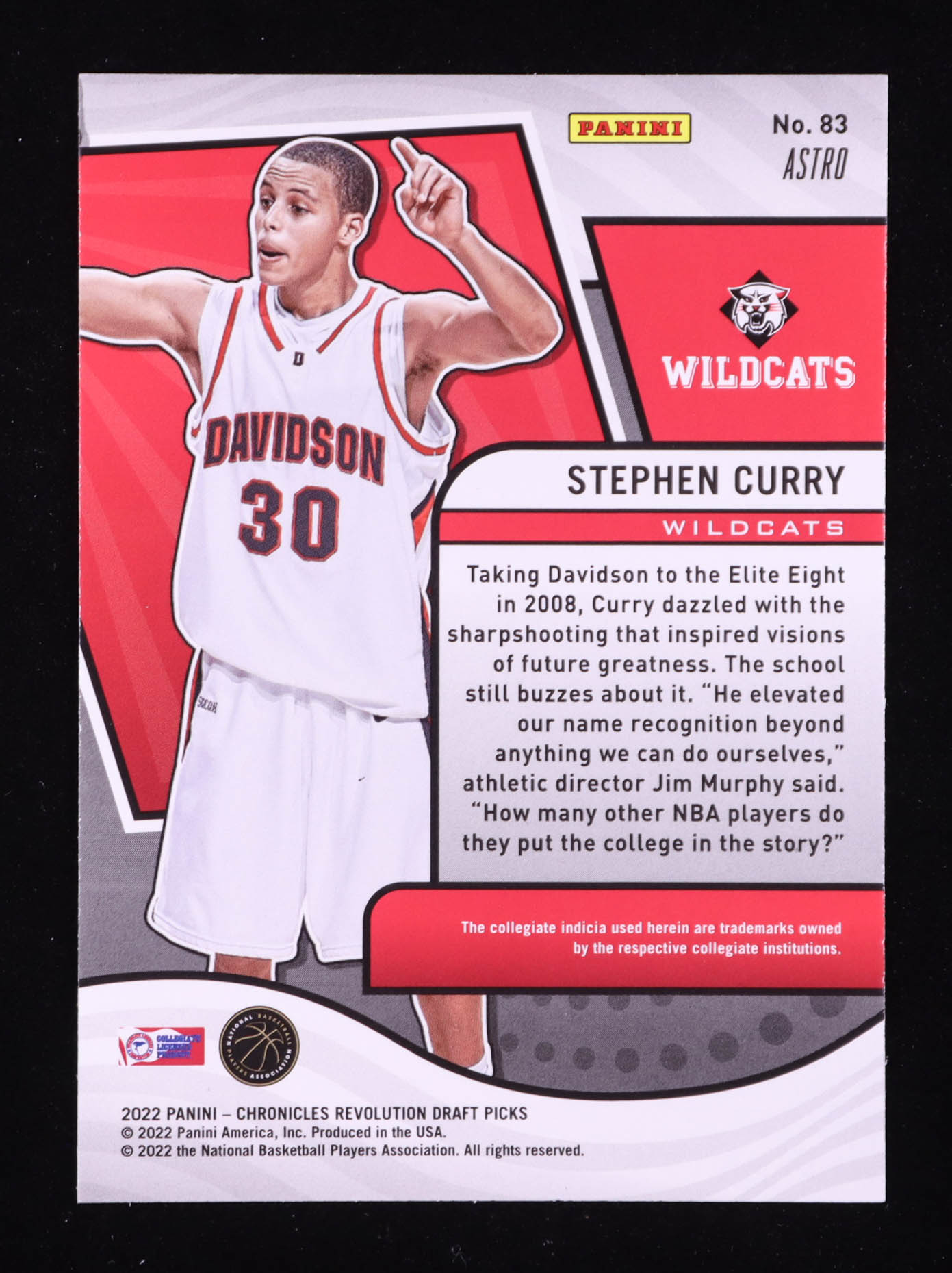 Please see photos for details regarding the condition of the card (Davidson Wildcats).