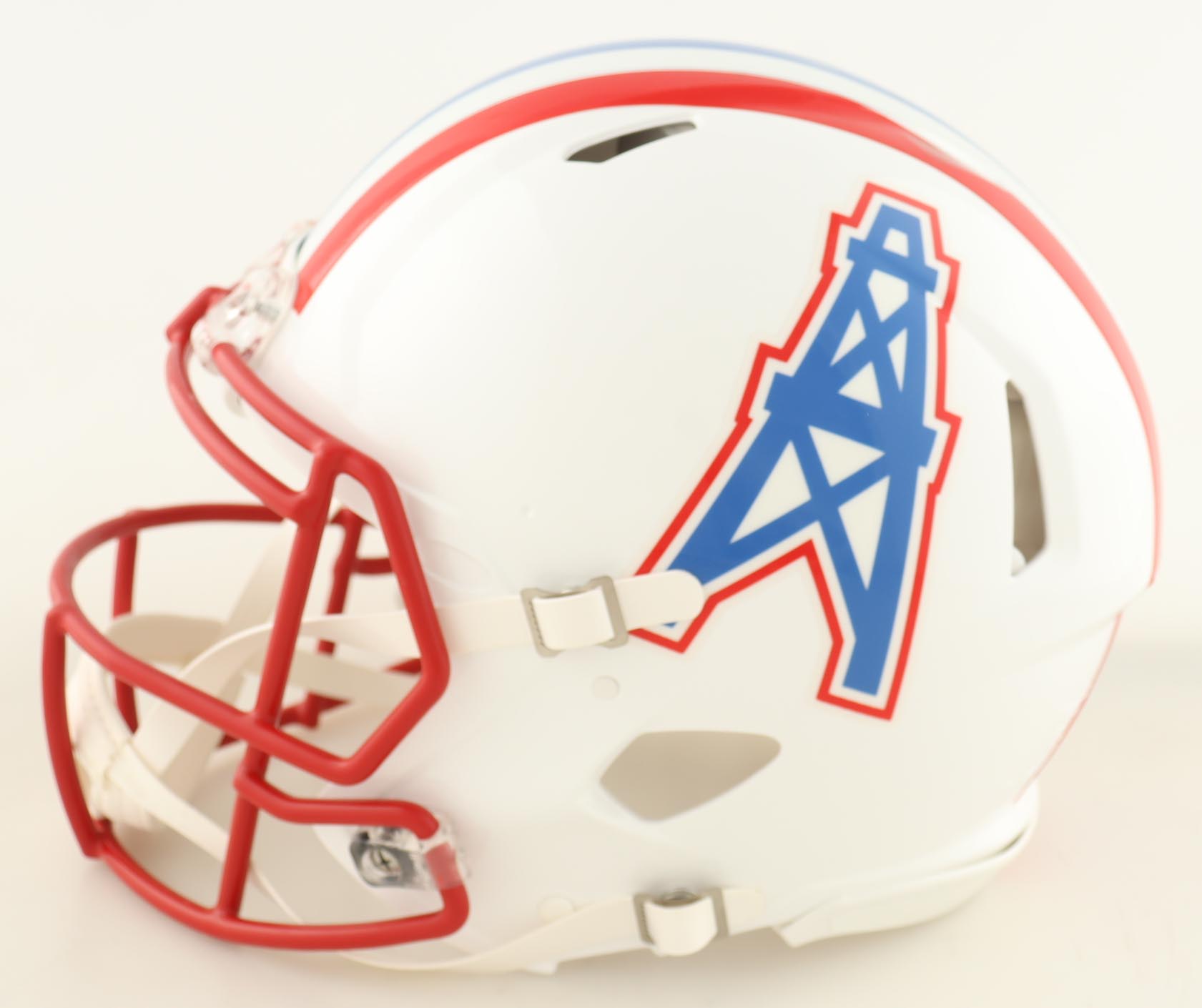 Riddell Houston Oilers full-size authentic on-field speed helmet. Hand-signed and inscribed by Earl Campbell (HOF).
