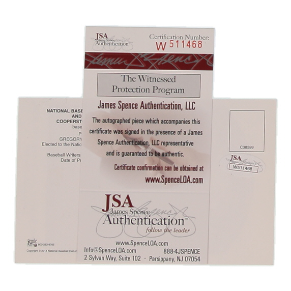 Greg Maddux Signed Hall Of Fame Plaque Postcard (JSA)