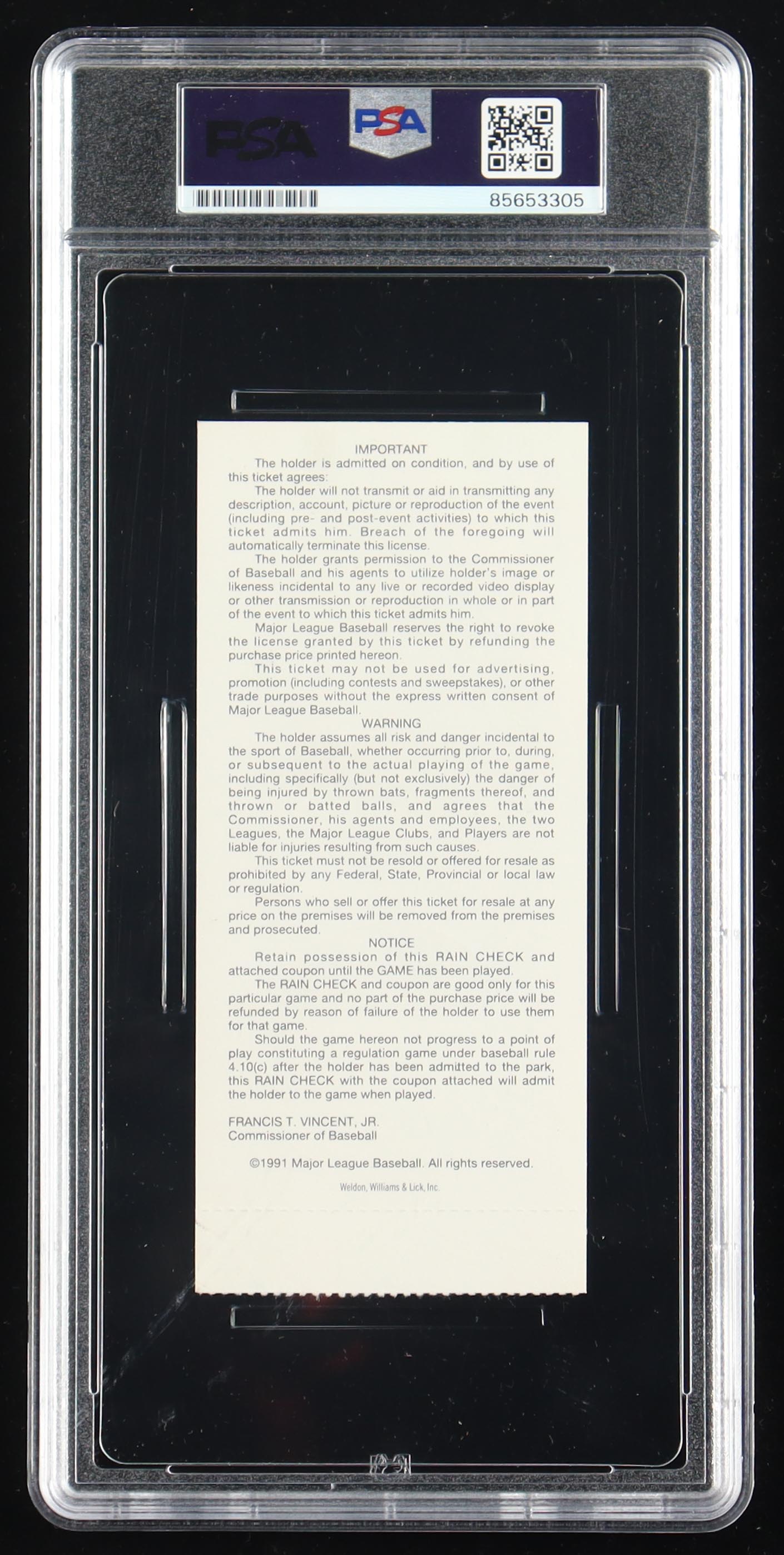 1991 All-Star Game ticket has been hand-signed by Nolan Ryan (Texas Rangers, HOF) and graded (PSA 10). Please see photos for details regarding the item.