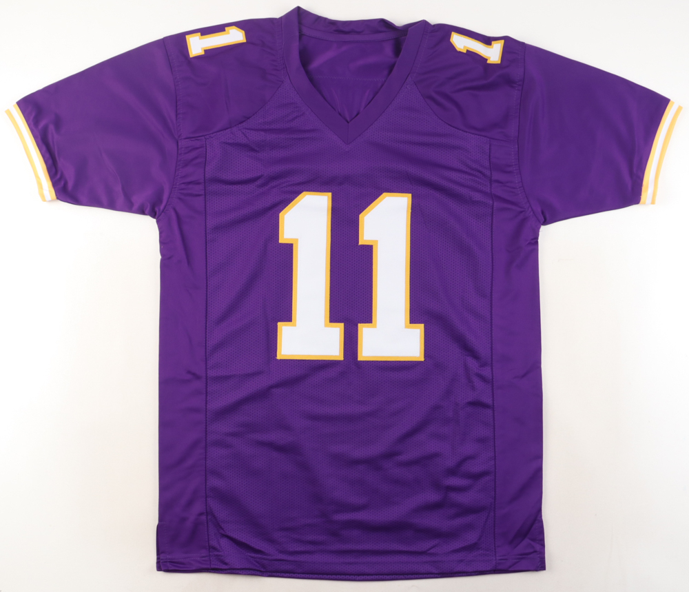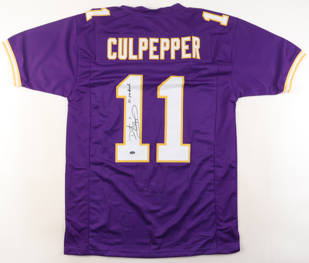 Custom jersey with everything sewn on, size L. Hand-signed and inscribed by Daunte Culpepper.
