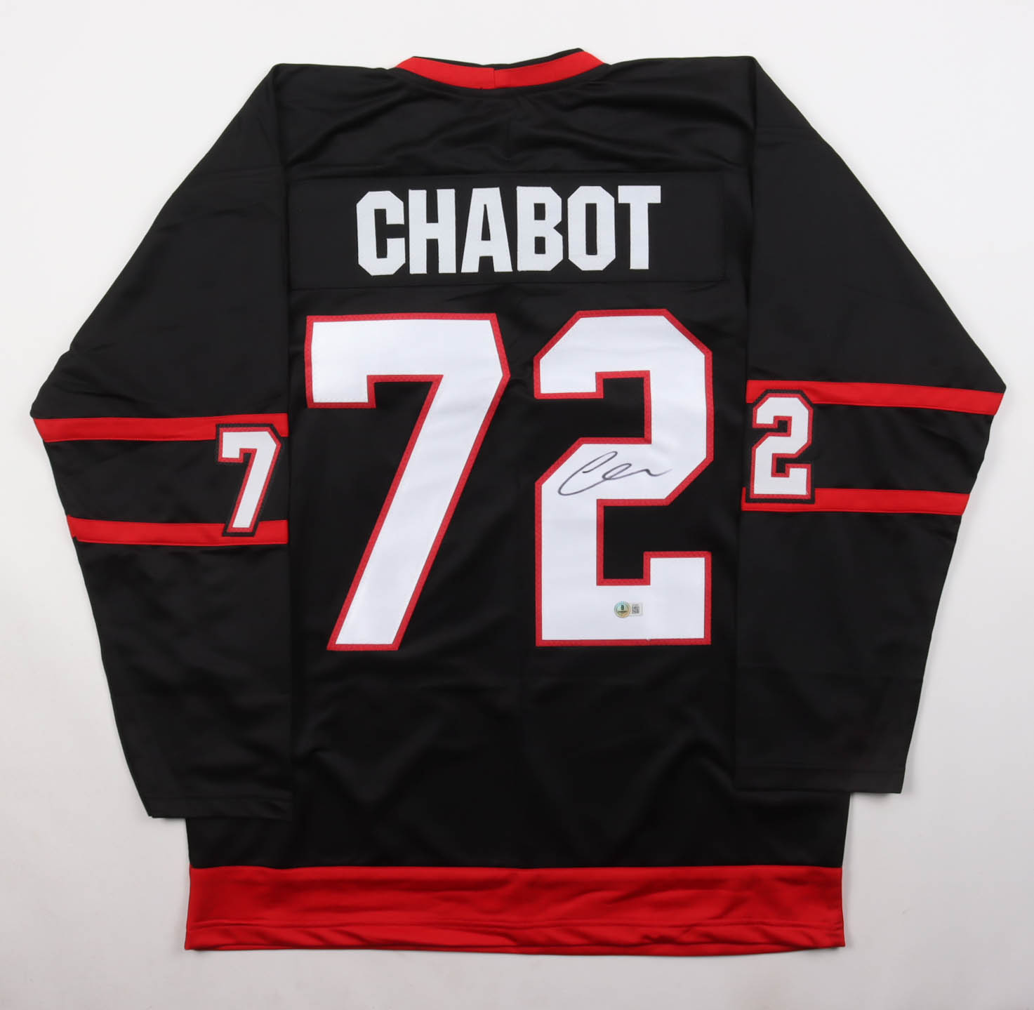 Custom jersey with everything sewn on, size XL. Hand-signed by Thomas Chabot.