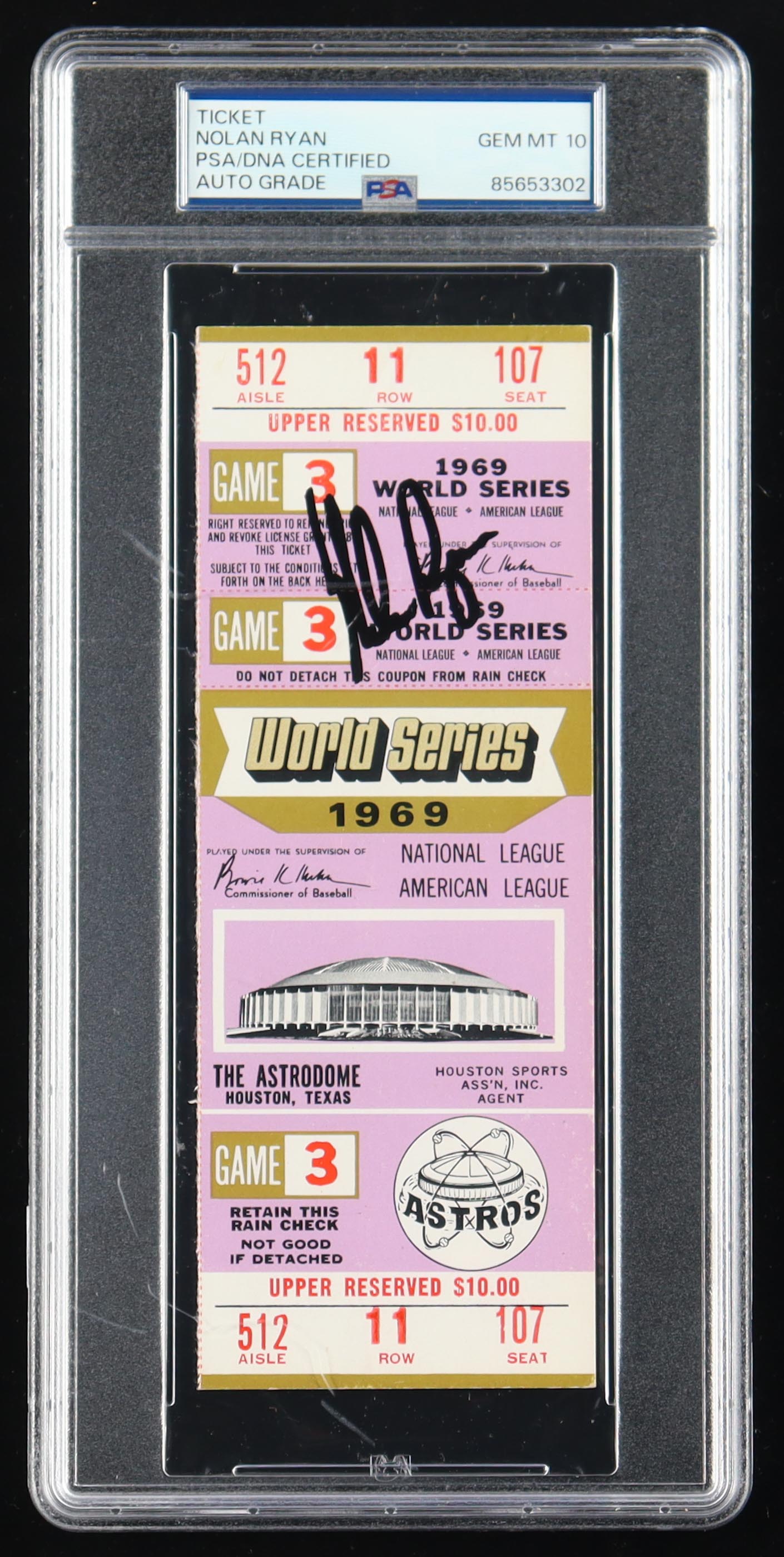 1969 World Series Game ticket has been hand-signed by Nolan Ryan (Texas Rangers, HOF) and graded (PSA 10). Please see photos for details regarding the item.