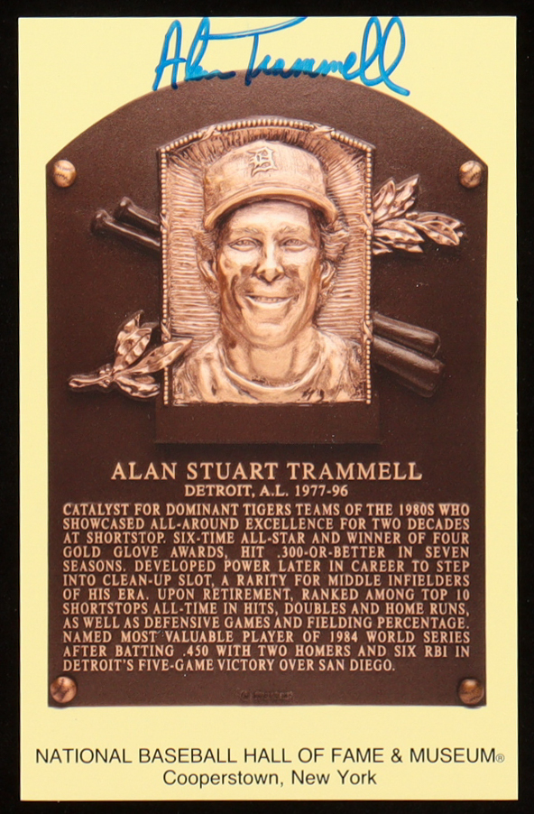 Alan Trammell Signed Hall Of Fame Plaque Postcard (JSA)
