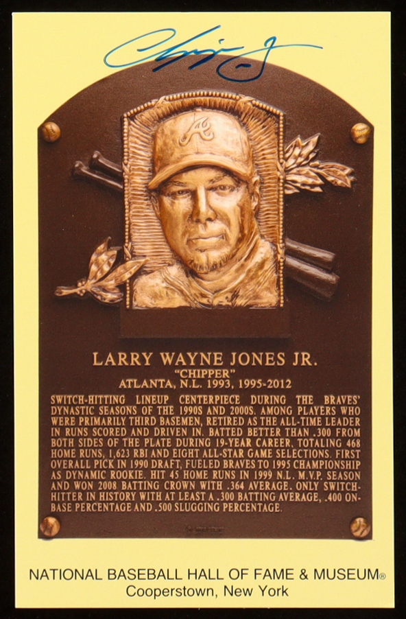 Chipper Jones Signed Hall Of Fame Plaque Postcard (PSA)