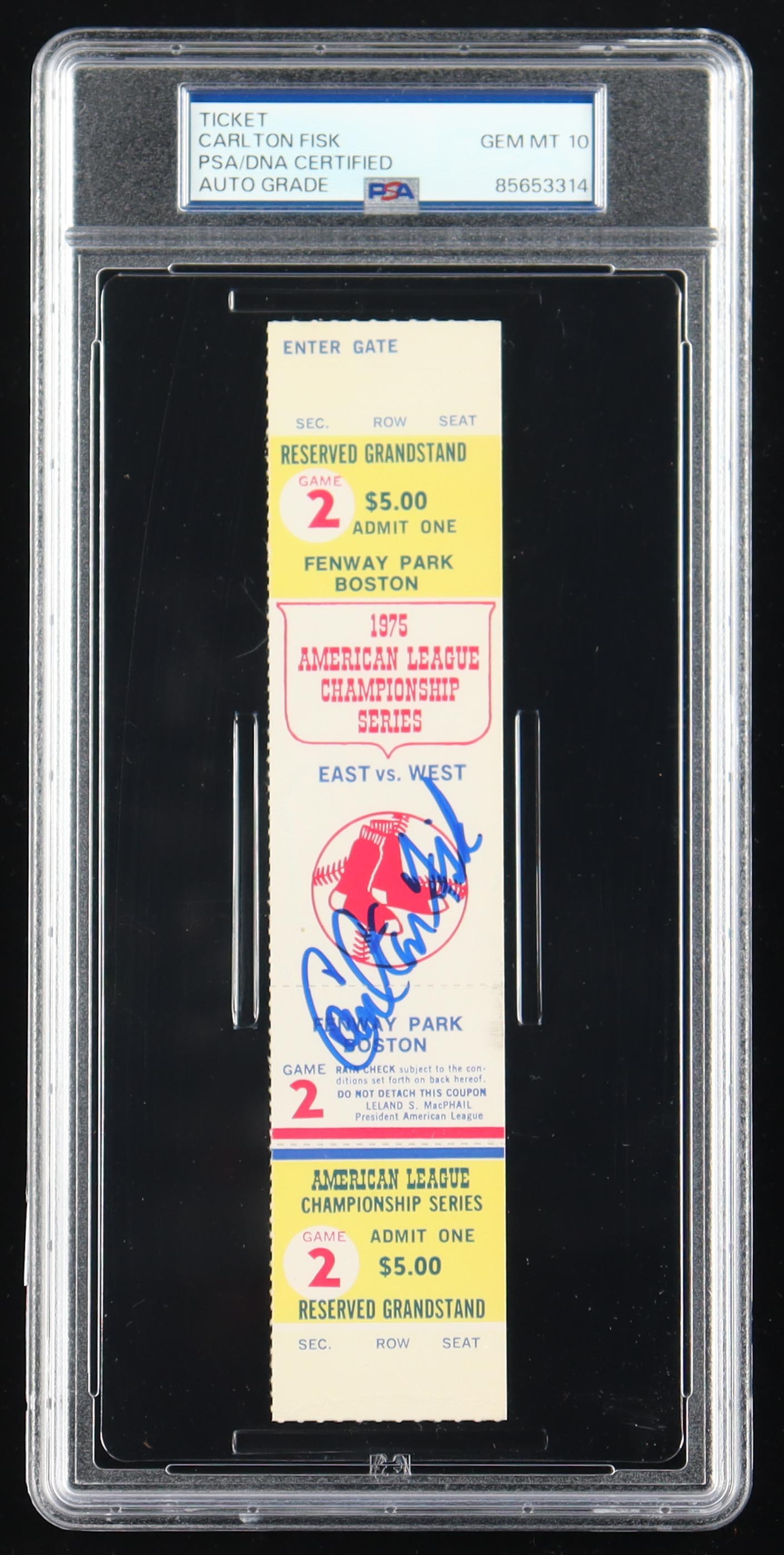 1975 ALCS Game ticket has been hand-signed by Carlton Fisk (Boston Red Sox, HOF) and graded (PSA 10). Please see photos for details regarding the item.