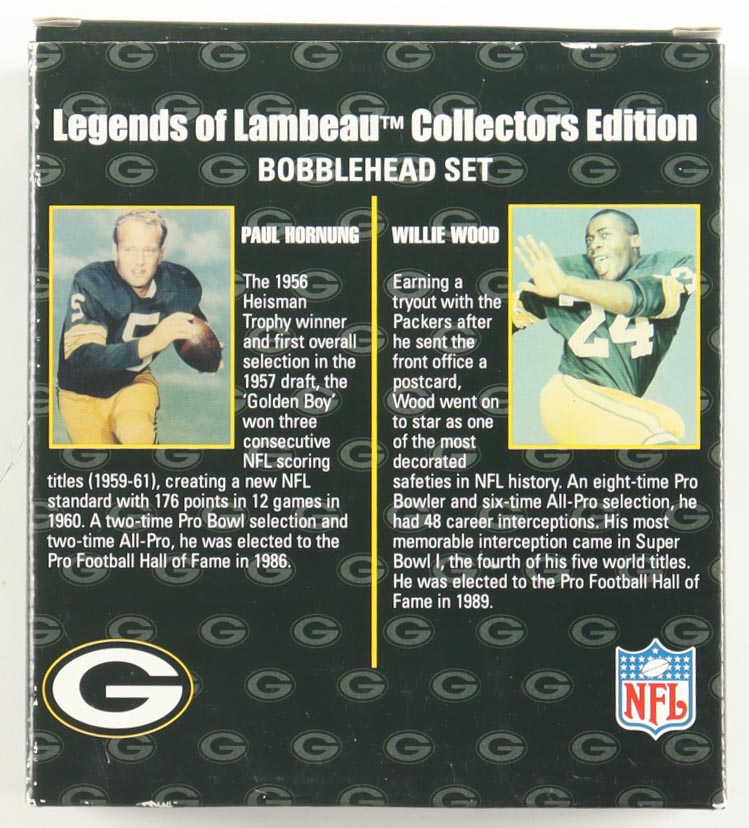Paul Hornung & Willie Wood Packers Bobblehead Set of (2) Lambeau Field with Original Box