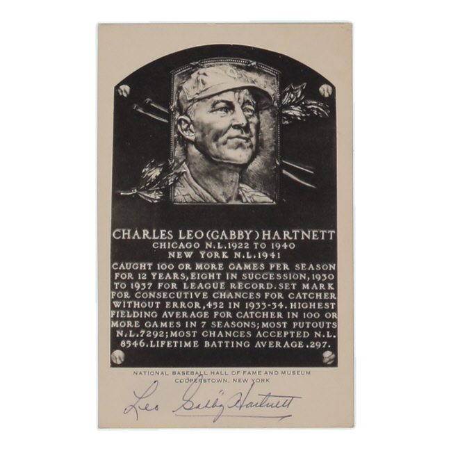 Leo "Gabby" Hartnett Signed Hall Of Fame Plaque Postcard (JSA)