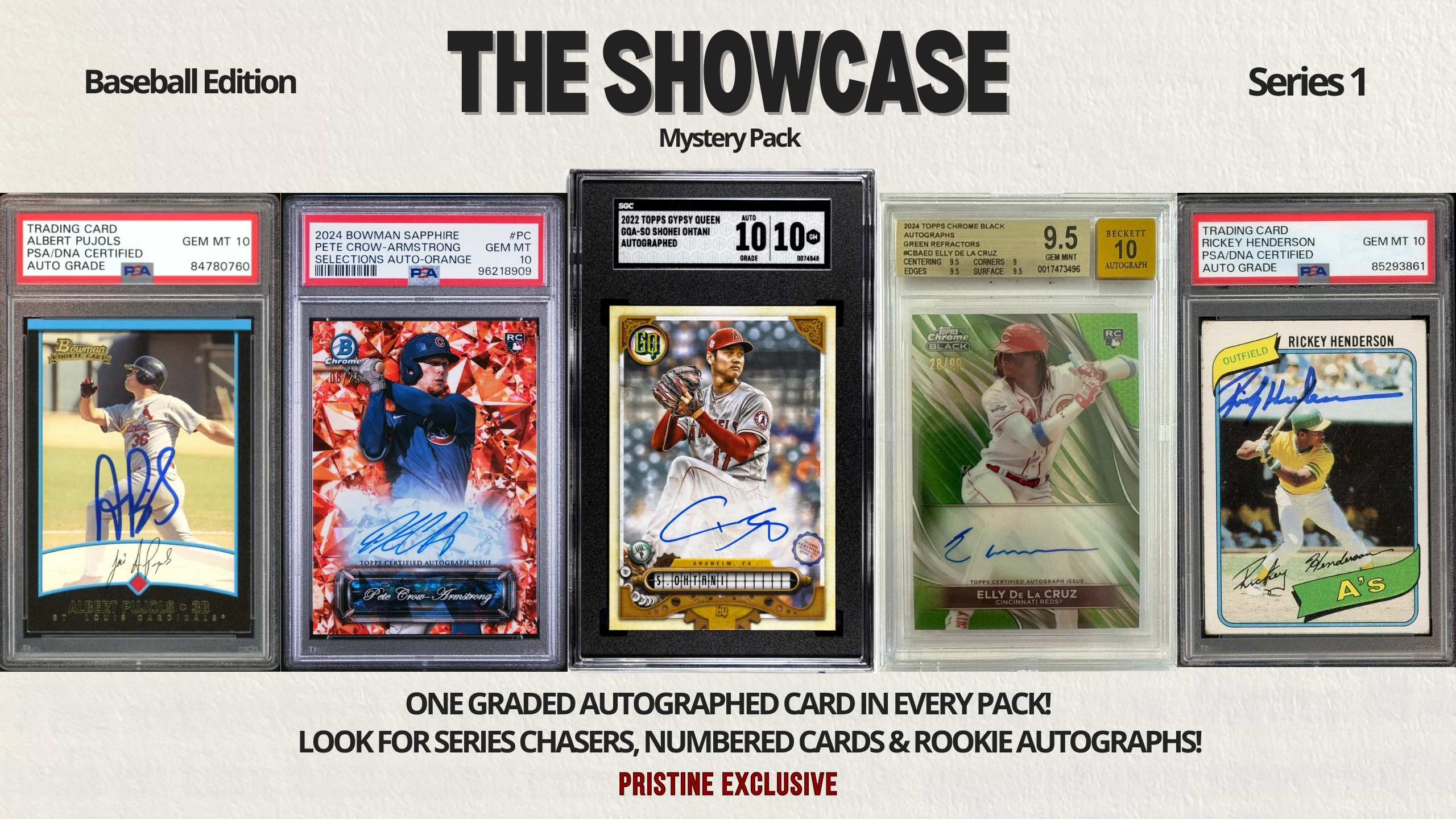 Pristine Exclusive: (1) Autographed Graded Card Per Pack! Chase the Shohei Ohtani Auto ($4,000), Pete Crow Armstrong Auto /25, ($1,200), Elly De La Cruz RC Auto /99 ($1,000), Albert Pujols RC Auto ($1,000), Rickey Henderson RC Auto ($800)